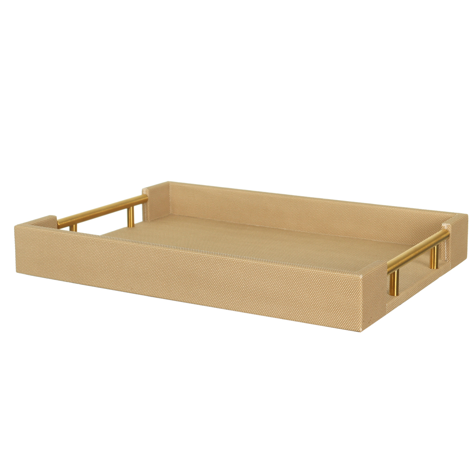 Sofisticação e funcionalidade em uma única peça. Essa bandeja é perfeita para transformar qualquer ambiente com um toque de elegância e bom gosto. Seu acabamento texturizado em tom neutro combina facilmente com diferentes estilos de decoração, enquanto as alças douradas trazem um charme refinado e moderno.