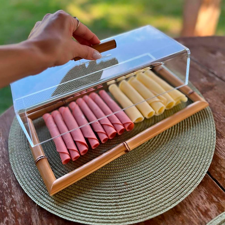 Tampa acrílico com puxador em bambu